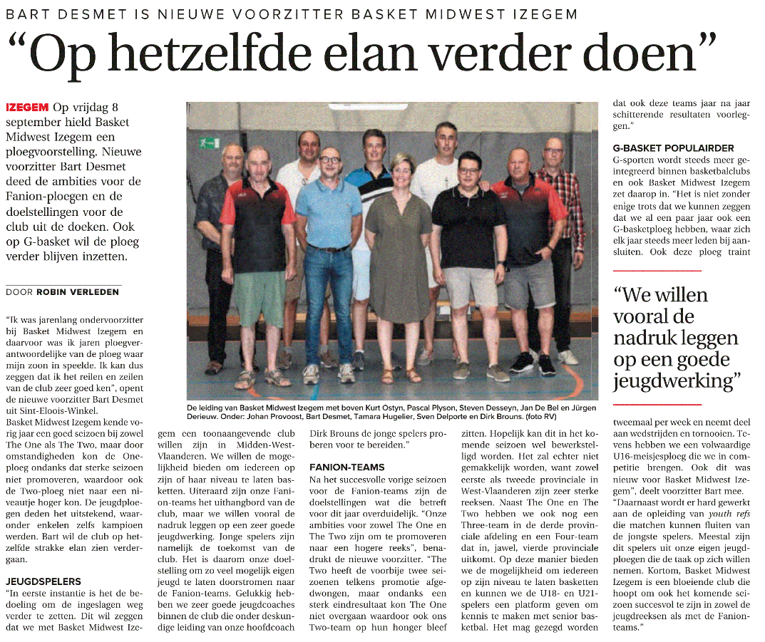 Naar aanleiding van de ploegvoorstelling op 08/09/2023 verscheen nadien volgend artikel in de krant.